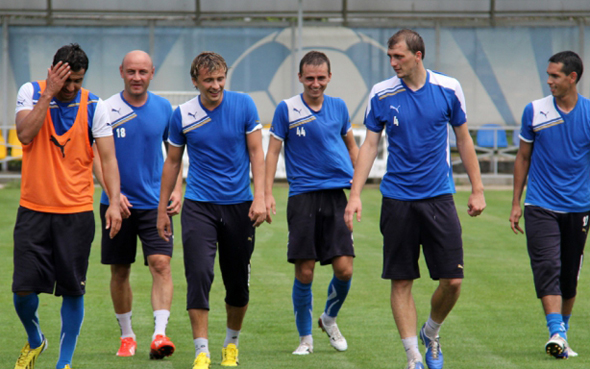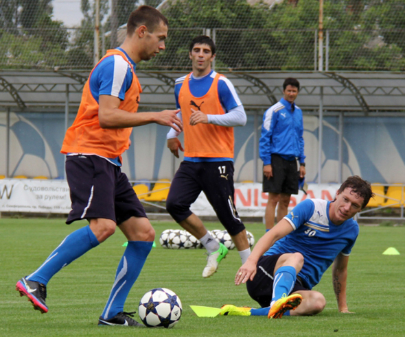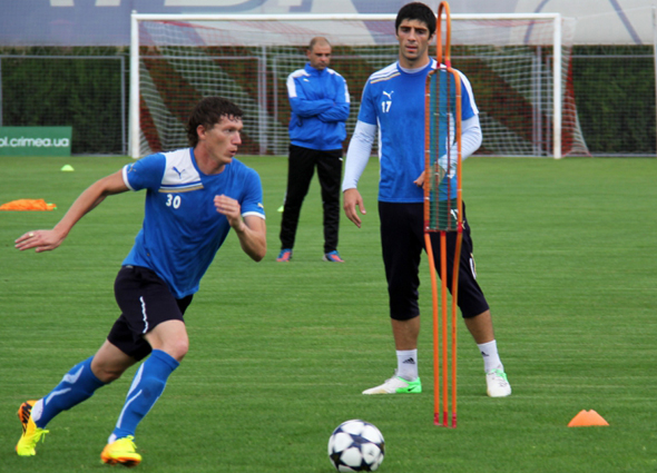 В понедельник новый наставник «Таврии» смог на практике познакомиться с футболистами. На базе «Скиф» прошло занятие, на котором греческий специалист сделал упор и на «физику», и на работу с мячом. В общей группе работали все те, кто хорошо знаком поклонникам «Таврии». По индивидуально программе занимался бразильский защитник Селио. Отсутствовали лишь продолжающий реабилитацию шведский легионер Густав Свенссон и Владимир Езерский, который должен вернуться в Симферополь во вторник.После групповых упражнений футболисты сделали акцент на техническую готовность. Здесь Янису Христопулосу помогали его коллеги. Так, тренировка вратарей прошла под присмотром ассистента по работе с голкиперами Константиноса Паганиоса, а общефизические тесты взял под свой контроль новый тренер по ОФП Леонидас Пападакис. Заметим, что ощутимую помощь греческому тренеру оказали и игроки симферопольской команды Анис Буссаиди и Рубен Гомес, ликвидировавшие трудности перевода. Переводчик для нового тренера «Таврии» прибудет в Симферополь во вторник..jpg)